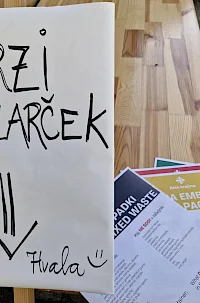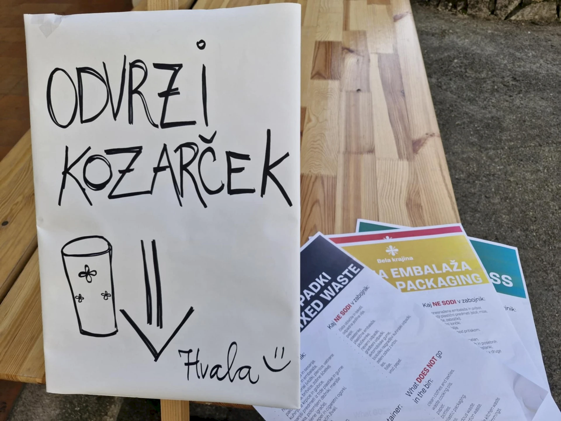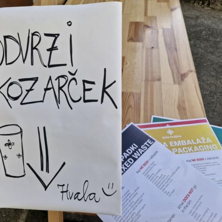 Zagotovili smo table za ločevanje odpadkov, jih namestili ob stojnice in prostovoljce opozorili na pomembnost pravilnega ravnanja z njimi.
