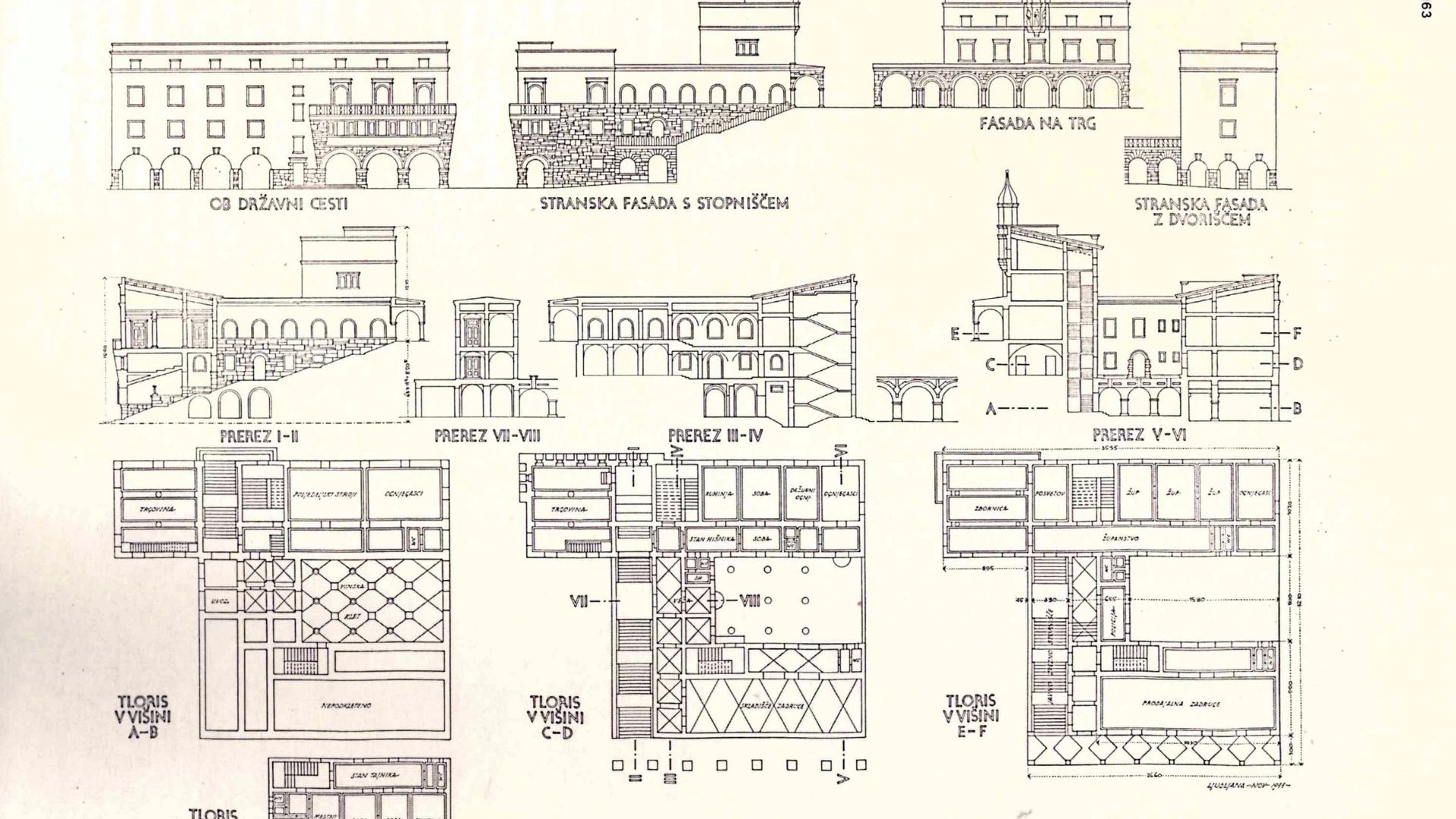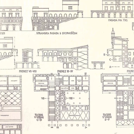 Tlorisne zasnove objektov sedejo v organsko strukturo mesta, natančno in kontekstualno se prilagajajo mestni tipologiji. Zasnove lahko preverimo z idejnimi načrti posameznih stavb, pri katerih je očitno, da so bili v njih upoštevani tudi strmi padci terena, tako značilni za zahodno Metliko.