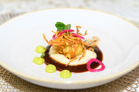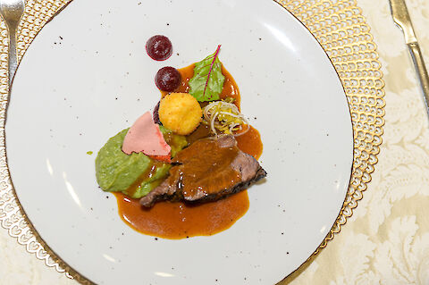 Toplo predjed je pripravila Gostilna Muller: jagnječji priželjc z grahom in meto v hrustljavem gnezdu, pire pastinaka, glazura s temnim Vizir pivom, čemaževa majoneza, okisane lisičke in čebula. Glavno jed so postregli gostitelji dogodka, Gostišče Kapušin: goveja lička, hrustljava kroglica, pire zelene in špinače, vložen por, marmelada rdeče pese, meringa rdeče pese. Sladico pa je pripravil Gostišče Veselič hruške, jabolka, slive, ajda, malina, oreščki.